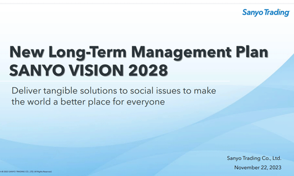 Under the slogan "Quest for Next," Sanyo Trading is committed to continuing to pursue the best solutions for making a better future for customers, for society, and for the environment