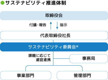サステナビリティ委員長は、委員会での検討・協議された方針や課題等を取締役会および執行役員会に報告します。なお、重要事項については、取締役会に付議しています。