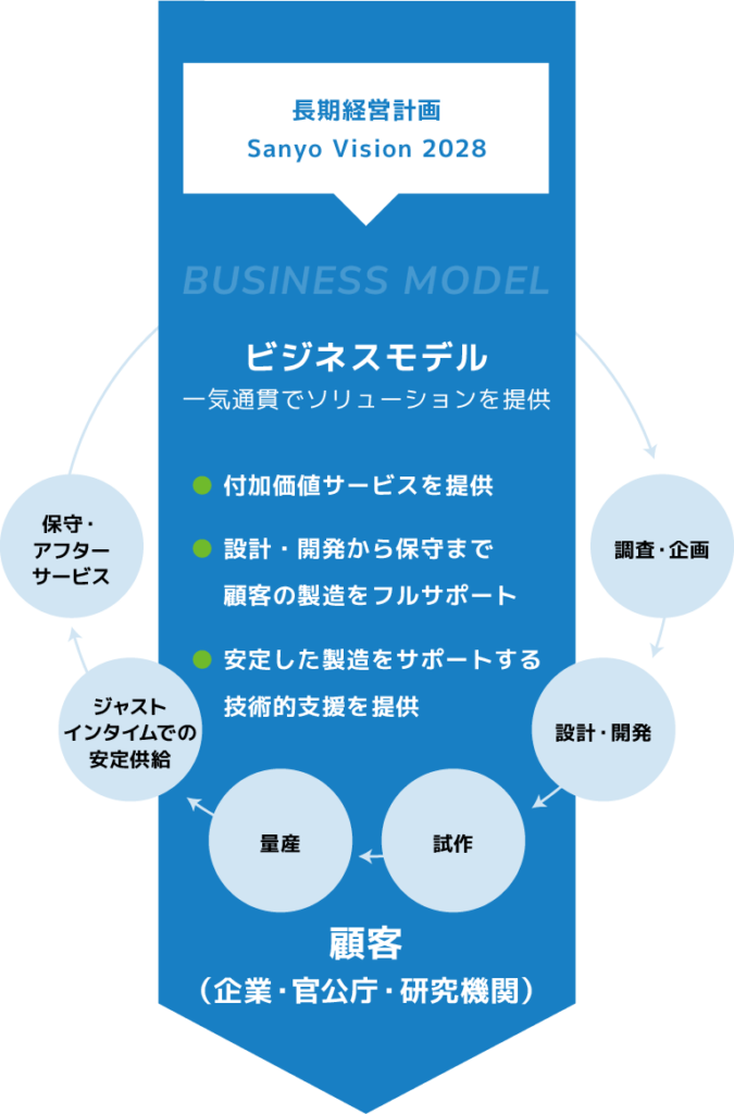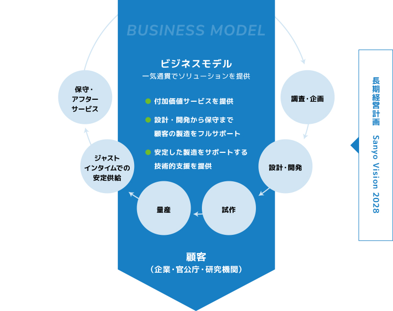 三洋貿易は、持続可能な開発目標に貢献するため、注力する4つの分野での新たな価値創造を目指しています。そのため、これまで培ってきた強みを活かした経営資源をもとに、顧客ニーズに応えるビジネス機能を発揮し、多種多様な商品・サービスを提供しています。